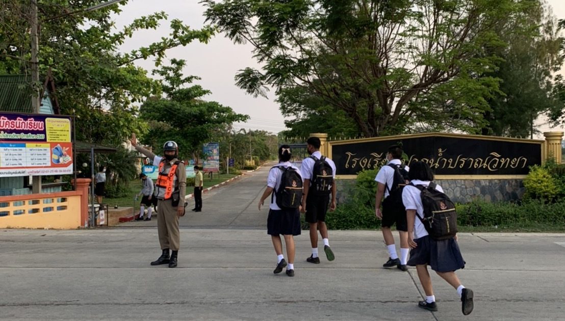 อำนวยความสะดวกจราจร ช่วงเช้าในชั่วโมงเร่งด่วน เพื่ออำนวยความสะดวกจรจรหน้าโรงเรียน ณ โรงเรียนบ้านปากน้ำปราณวิทยา