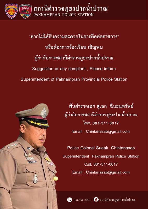 ประชาสัมพันธ์จากสถานีตำรวจภูธรปากน้ำปราณ